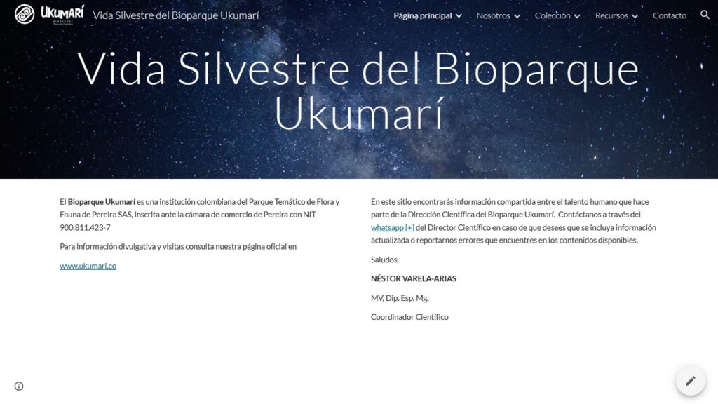 - Título: Apoyo en la producción de contenidos técnicos relacionados a la salud y manejo de fauna silvestre y exótica en el Bioparque Ukumarí.