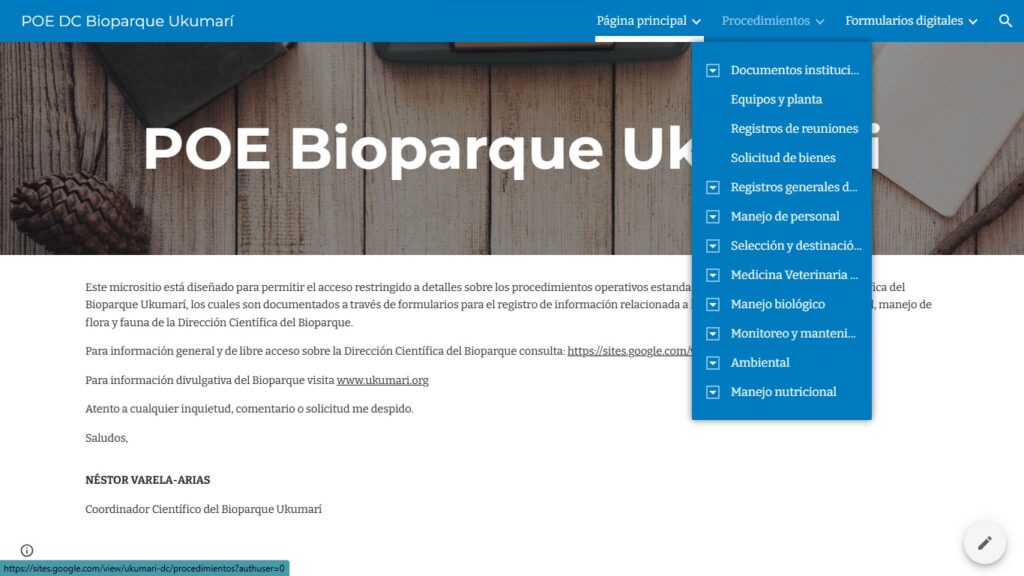 También cooperamos en el desarrollo de aplicaciones online para el manejo de registros y procedimientos operativos estandarizados (POE) y que son esenciales a muchas actividades de los profesionales de la Dirección Científica del Bioparque: